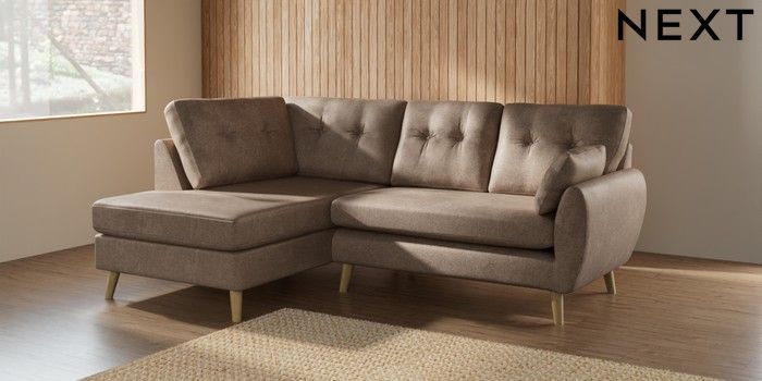 7.2.10 Buy Wilson Buttoned Back Medium Corner Chaise - Left Hand Plush Chenille Mid Natural Retro Tapered - Light from the Seasons online shop Click here to use our website with more accessibility support, for example screen readers