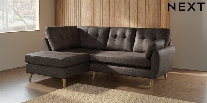 7.2.10 Buy Wilson Buttoned Back Medium Corner Chaise - Left Hand Plush Chenille Mink Brown Retro Tapered - Light from the Seasons online shop Click here to use our website with more accessibility support, for example screen readers
