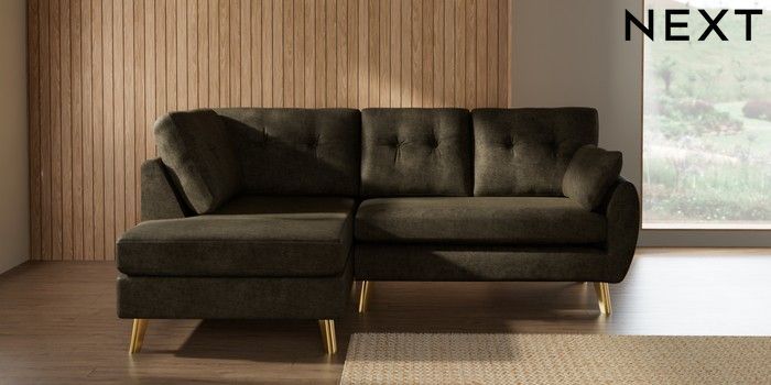 7.3.1 Buy Wilson Buttoned Back Medium Corner Chaise - Left Hand Plush Chenille Moss Green Metal Tapered - Gold from the Seasons online shop Click here to use our website with more accessibility support, for example screen readers
