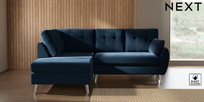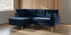 7.3.1 Buy Wilson Buttoned Back Medium Corner Chaise - Left Hand Plush Velvet Easy Clean Airforce Blue Metal Tapered - Chrome from the Seasons online shop Click here to use our website with more accessibility support, for example screen readers