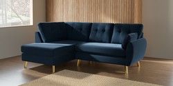 7.3.1 Buy Wilson Buttoned Back Medium Corner Chaise - Left Hand Plush Velvet Easy Clean Airforce Blue Metal Tapered - Gold from the Seasons online shop Click here to use our website with more accessibility support, for example screen readers
