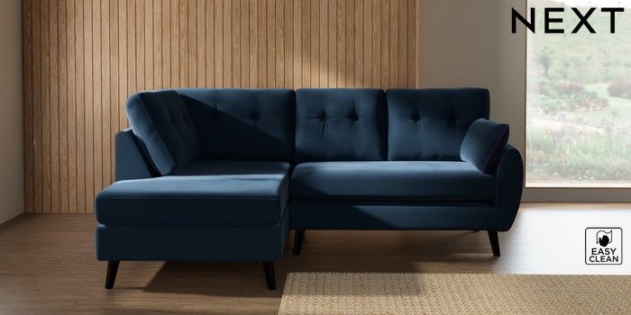 7.3.1 Buy Wilson Buttoned Back Medium Corner Chaise - Left Hand Plush Velvet Easy Clean Airforce Blue Retro Tapered - Dark from the Seasons online shop Click here to use our website with more accessibility support, for example screen readers