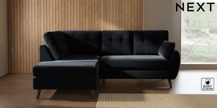 7.3.1 Buy Wilson Buttoned Back Medium Corner Chaise - Left Hand Plush Velvet Easy Clean Charcoal Grey Retro Tapered - Mid from the Seasons online shop Click here to use our website with more accessibility support, for example screen readers