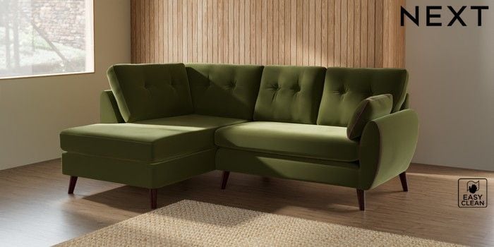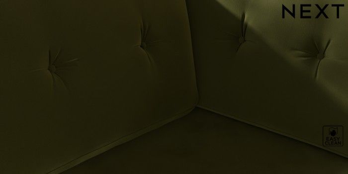 7.3.1 Buy Wilson Buttoned Back Medium Corner Chaise - Left Hand Plush Velvet Easy Clean Mid Olive Green Retro Tapered - Dark Brown from the Seasons online shop Click here to use our website with more accessibility support, for example screen readers