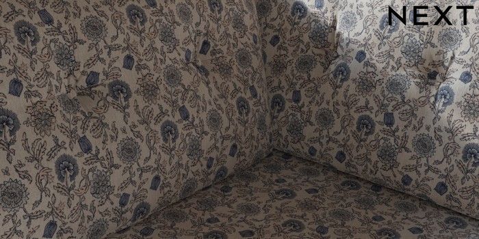 7.3.1 Buy Wilson Buttoned Back Medium Corner Chaise - Left Hand Relaxed Linen Look Print Woodblock Floral Blue Low Retro Tapered Metal Cap - Mid from the Seasons online shop
