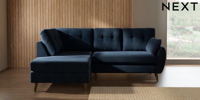 7.3.1 Buy Wilson Buttoned Back Medium Corner Chaise - Left Hand Ripple Chenille Dark Blue Low Retro Tapered Metal Cap - Mid from the Seasons online shop Click here to use our website with more accessibility support, for example screen readers