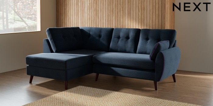 7.2.10 Buy Wilson Buttoned Back Medium Corner Chaise - Left Hand Ripple Chenille Dark Blue Retro Tapered - Dark Brown from the Seasons online shop Click here to use our website with more accessibility support, for example screen readers