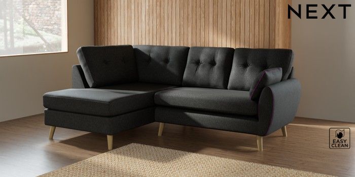 7.3.1 Buy Wilson Buttoned Back Medium Corner Chaise - Left Hand Tweedy Blend Easy Clean Charcoal Grey Retro Tapered - Light from the Seasons online shop Click here to use our website with more accessibility support, for example screen readers