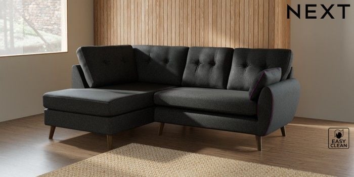 7.3.1 Buy Wilson Buttoned Back Medium Corner Chaise - Left Hand Tweedy Blend Easy Clean Charcoal Grey Retro Tapered - Mid from the Seasons online shop Click here to use our website with more accessibility support, for example screen readers