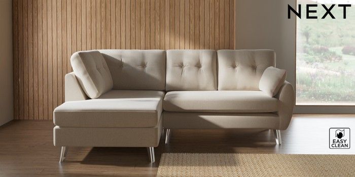 7.3.1 Buy Wilson Buttoned Back Medium Corner Chaise - Left Hand Tweedy Blend Easy Clean Oyster Metal Tapered - Chrome from the Seasons online shop Click here to use our website with more accessibility support, for example screen readers