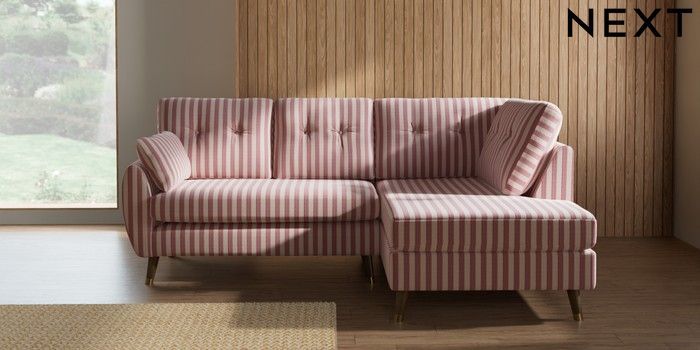 7.3.1 Buy Wilson Buttoned Back Medium Corner Chaise - Right Hand Bold Chenille Stripe Dark Pink Low Retro Tapered Metal Cap - Mid from the Seasons online shop Click here to use our website with more accessibility support, for example screen readers