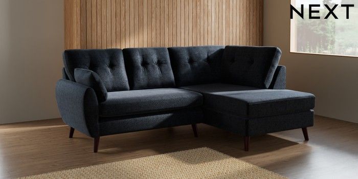 7.3.1 Buy Wilson Buttoned Back Medium Corner Chaise - Right Hand Boucle Chenille Dark Slate Blue Retro Tapered - Dark Brown from the Seasons online shop Click here to use our website with more accessibility support, for example screen readers