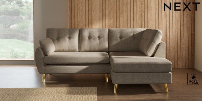 7.3.1 Buy Wilson Buttoned Back Medium Corner Chaise - Right Hand Boucle Weave Easy Clean Dark Natural Metal Tapered - Gold from the Seasons online shop Click here to use our website with more accessibility support, for example screen readers