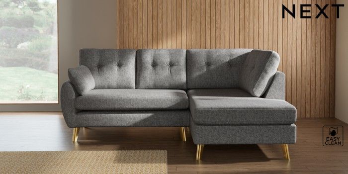 7.3.1 Buy Wilson Buttoned Back Medium Corner Chaise - Right Hand Chunky Boucle Easy Clean Light Grey Metal Tapered - Gold from the Seasons online shop Click here to use our website with more accessibility support, for example screen readers