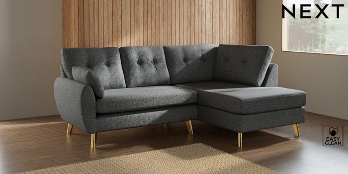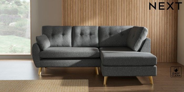 7.3.1 Buy Wilson Buttoned Back Medium Corner Chaise - Right Hand Chunky Boucle Easy Clean Mid Grey Metal Tapered - Gold from the Seasons online shop Click here to use our website with more accessibility support, for example screen readers