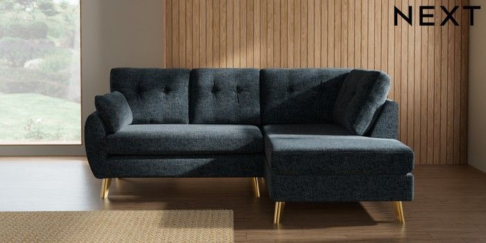 7.3.1 Buy Wilson Buttoned Back Medium Corner Chaise - Right Hand Chunky Chenille Dark Navy Blue Metal Tapered - Gold from the Seasons online shop Click here to use our website with more accessibility support, for example screen readers