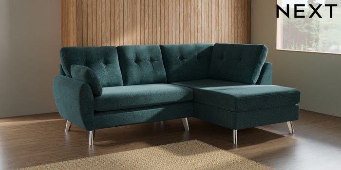 7.3.1 Buy Wilson Buttoned Back Medium Corner Chaise - Right Hand Chunky Chenille Mid Teal Green Metal Tapered - Chrome from the Seasons online shop Click here to use our website with more accessibility support, for example screen readers