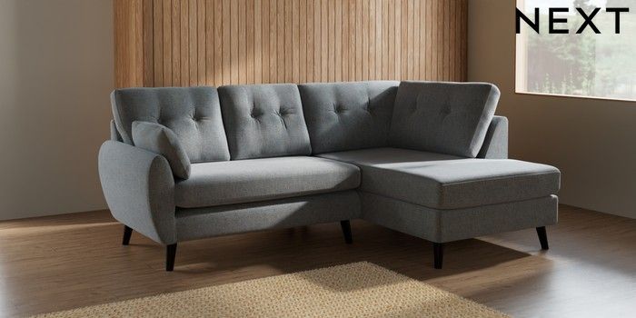 7.2.10 Buy Wilson Buttoned Back Medium Corner Chaise - Right Hand Chunky Marl Mid Grey Retro Tapered - Dark from the Seasons online shop Click here to use our website with more accessibility support, for example screen readers