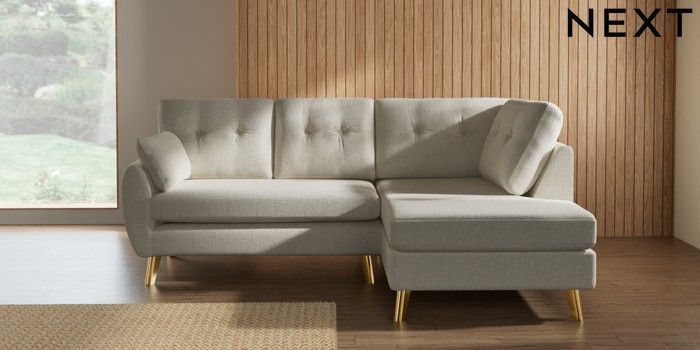 7.3.1 Buy Wilson Buttoned Back Medium Corner Chaise - Right Hand Chunky Texture Oyster Metal Tapered - Gold from the Seasons online shop Click here to use our website with more accessibility support, for example screen readers