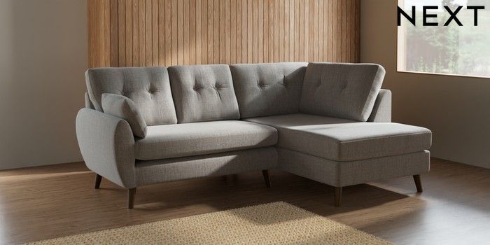7.2.10 Buy Wilson Buttoned Back Medium Corner Chaise - Right Hand Chunky Weave Dove Grey Retro Tapered - Mid from the Seasons online shop Click here to use our website with more accessibility support, for example screen readers
