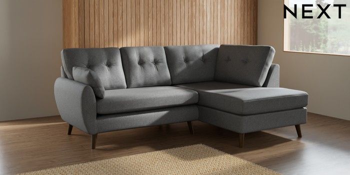7.2.10 Buy Wilson Buttoned Back Medium Corner Chaise - Right Hand Chunky Weave Mid Grey Retro Tapered - Mid from the Seasons online shop Click here to use our website with more accessibility support, for example screen readers