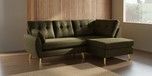7.3.1 Buy Wilson Buttoned Back Medium Corner Chaise - Right Hand Cotswold Chenille Dark Green Metal Tapered - Gold from the Seasons online shop Click here to use our website with more accessibility support, for example screen readers