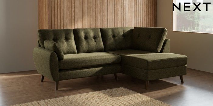 7.3.1 Buy Wilson Buttoned Back Medium Corner Chaise - Right Hand Cotswold Chenille Dark Green Retro Tapered - Mid from the Seasons online shop Click here to use our website with more accessibility support, for example screen readers