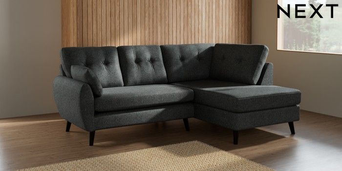 7.2.10 Buy Wilson Buttoned Back Medium Corner Chaise - Right Hand Cotswold Chenille Dark Grey Retro Tapered - Dark from the Seasons online shop Click here to use our website with more accessibility support, for example screen readers