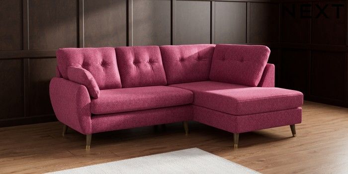 7.3.1 Buy Wilson Buttoned Back Medium Corner Chaise - Right Hand Cotswold Chenille Dark Raspberry Pink Low Retro Tapered Metal Cap - Mid from the Seasons online shop Click here to use our website with more accessibility support, for example screen readers