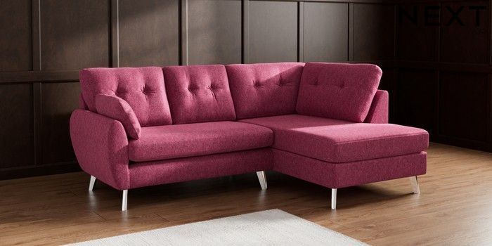 7.3.1 Buy Wilson Buttoned Back Medium Corner Chaise - Right Hand Cotswold Chenille Dark Raspberry Pink Metal Tapered - Chrome from the Seasons online shop Click here to use our website with more accessibility support, for example screen readers