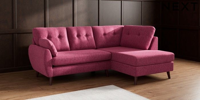 7.2.10 Buy Wilson Buttoned Back Medium Corner Chaise - Right Hand Cotswold Chenille Dark Raspberry Pink Retro Tapered - Dark Brown from the Seasons online shop Click here to use our website with more accessibility support, for example screen readers