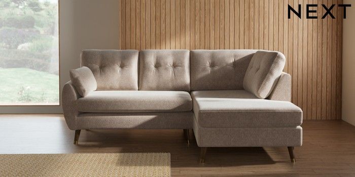 7.3.1 Buy Wilson Buttoned Back Medium Corner Chaise - Right Hand Cotswold Chenille Light Natural Low Retro Tapered Metal Cap - Mid from the Seasons online shop Click here to use our website with more accessibility support, for example screen readers