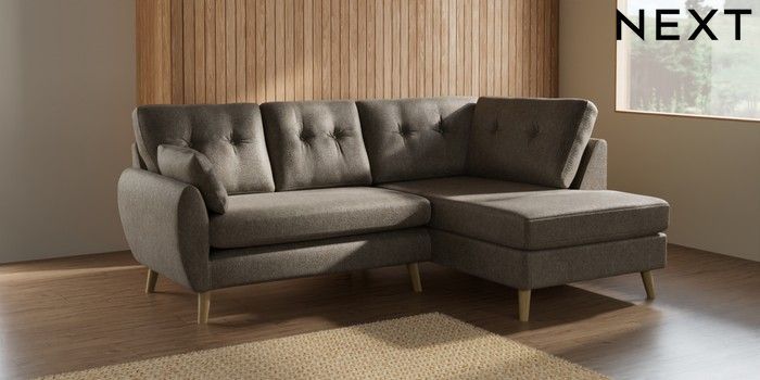 7.2.10 Buy Wilson Buttoned Back Medium Corner Chaise - Right Hand Cotswold Chenille Mid Mink Brown Retro Tapered - Light from the Seasons online shop Click here to use our website with more accessibility support, for example screen readers