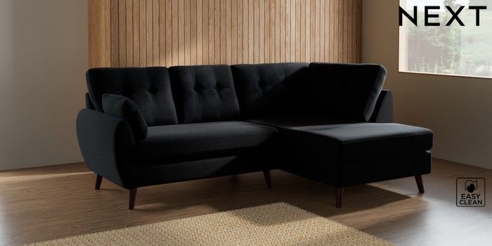 7.3.1 Buy Wilson Buttoned Back Medium Corner Chaise - Right Hand Fine Chenille Easy Clean Black Retro Tapered - Dark Brown from the Seasons online shop Click here to use our website with more accessibility support, for example screen readers
