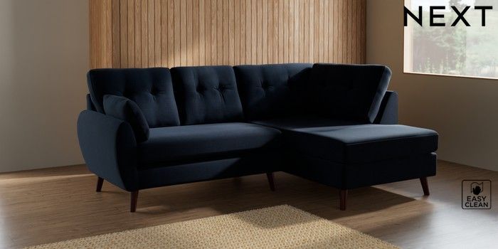 7.3.1 Buy Wilson Buttoned Back Medium Corner Chaise - Right Hand Fine Chenille Easy Clean Dark Navy Blue Retro Tapered - Dark Brown from the Seasons online shop Click here to use our website with more accessibility support, for example screen readers