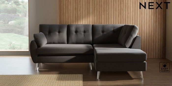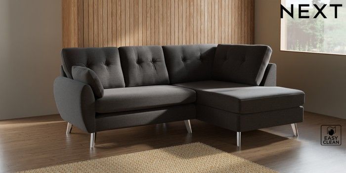 7.3.1 Buy Wilson Buttoned Back Medium Corner Chaise - Right Hand Fine Chenille Easy Clean Dark Smoke Grey Metal Tapered - Chrome from the Seasons online shop Click here to use our website with more accessibility support, for example screen readers