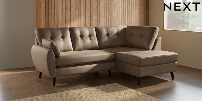 7.3.1 Buy Wilson Buttoned Back Medium Corner Chaise - Right Hand Luxe Chenille Mid Camel Beige Retro Tapered - Dark Brown from the Seasons online shop Click here to use our website with more accessibility support, for example screen readers