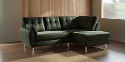 7.3.1 Buy Wilson Buttoned Back Medium Corner Chaise - Right Hand Luxe Chenille Mid Green Metal Tapered - Chrome from the Seasons online shop Click here to use our website with more accessibility support, for example screen readers