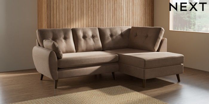 7.2.10 Buy Wilson Buttoned Back Medium Corner Chaise - Right Hand Luxe Chenille Mid Natural Retro Tapered - Mid from the Seasons online shop Click here to use our website with more accessibility support, for example screen readers