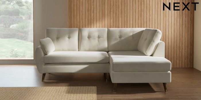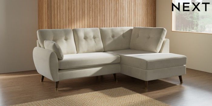 7.3.1 Buy Wilson Buttoned Back Medium Corner Chaise - Right Hand Luxe Chenille Oyster Low Retro Tapered Metal Cap - Mid from the Seasons online shop Click here to use our website with more accessibility support, for example screen readers