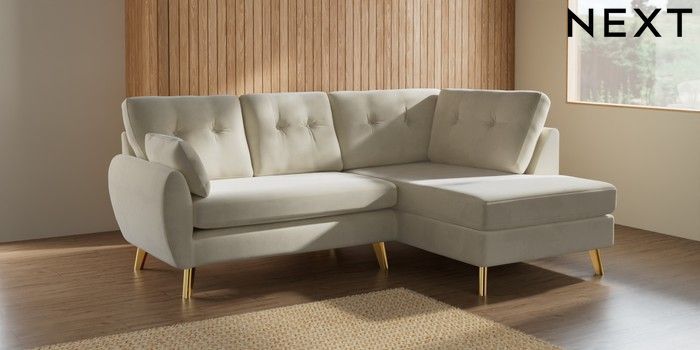 7.3.1 Buy Wilson Buttoned Back Medium Corner Chaise - Right Hand Luxe Chenille Oyster Metal Tapered - Gold from the Seasons online shop Click here to use our website with more accessibility support, for example screen readers