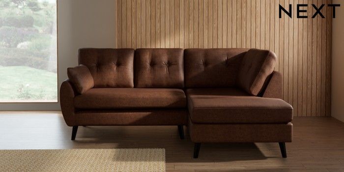 7.3.1 Buy Wilson Buttoned Back Medium Corner Chaise - Right Hand Monza Faux Leather Easy Clean Chestnut Brown Retro Tapered - Dark from the Seasons online shop Click here to use our website with more accessibility support, for example screen readers