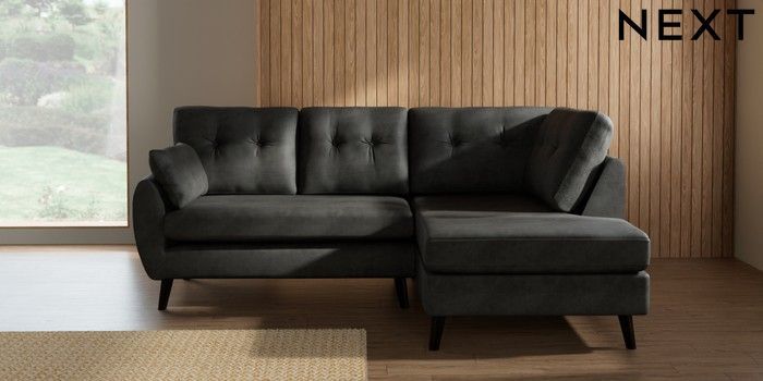 7.3.1 Buy Wilson Buttoned Back Medium Corner Chaise - Right Hand Monza Faux Leather Easy Clean Dark Grey Retro Tapered - Dark from the Seasons online shop Click here to use our website with more accessibility support, for example screen readers