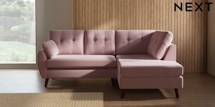 7.3.1 Buy Wilson Buttoned Back Medium Corner Chaise - Right Hand Natural Mix Light Rose Pink Retro Tapered - Dark Brown from the Seasons online shop Click here to use our website with more accessibility support, for example screen readers