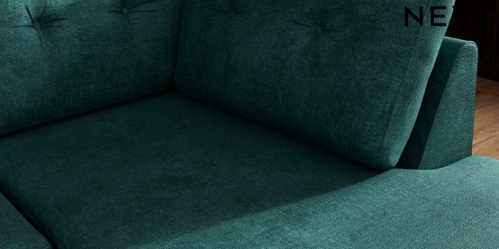7.3.1 Buy Wilson Buttoned Back Medium Corner Chaise - Right Hand Plush Chenille Dark Teal Green Metal Tapered - Gold from the Seasons online shop Click here to use our website with more accessibility support, for example screen readers