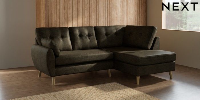 7.2.10 Buy Wilson Buttoned Back Medium Corner Chaise - Right Hand Plush Chenille Moss Green Retro Tapered - Light from the Seasons online shop Click here to use our website with more accessibility support, for example screen readers