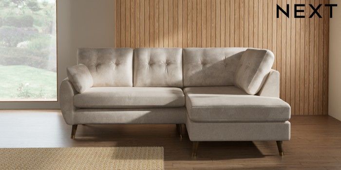 7.3.1 Buy Wilson Buttoned Back Medium Corner Chaise - Right Hand Plush Chenille Oyster Low Retro Tapered Metal Cap - Mid from the Seasons online shop Click here to use our website with more accessibility support, for example screen readers
