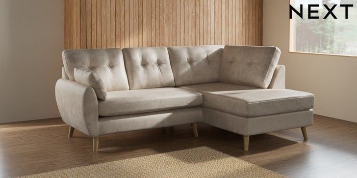 7.2.10 Buy Wilson Buttoned Back Medium Corner Chaise - Right Hand Plush Chenille Oyster Retro Tapered - Light from the Seasons online shop Click here to use our website with more accessibility support, for example screen readers