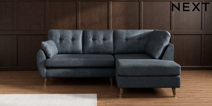 7.3.1 Buy Wilson Buttoned Back Medium Corner Chaise - Right Hand Plush Chenille Slate Blue Low Retro Tapered Metal Cap - Mid from the Seasons online shop Click here to use our website with more accessibility support, for example screen readers