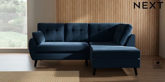 7.3.1 Buy Wilson Buttoned Back Medium Corner Chaise - Right Hand Plush Velvet Easy Clean Airforce Blue Retro Tapered - Dark from the Seasons online shop Click here to use our website with more accessibility support, for example screen readers